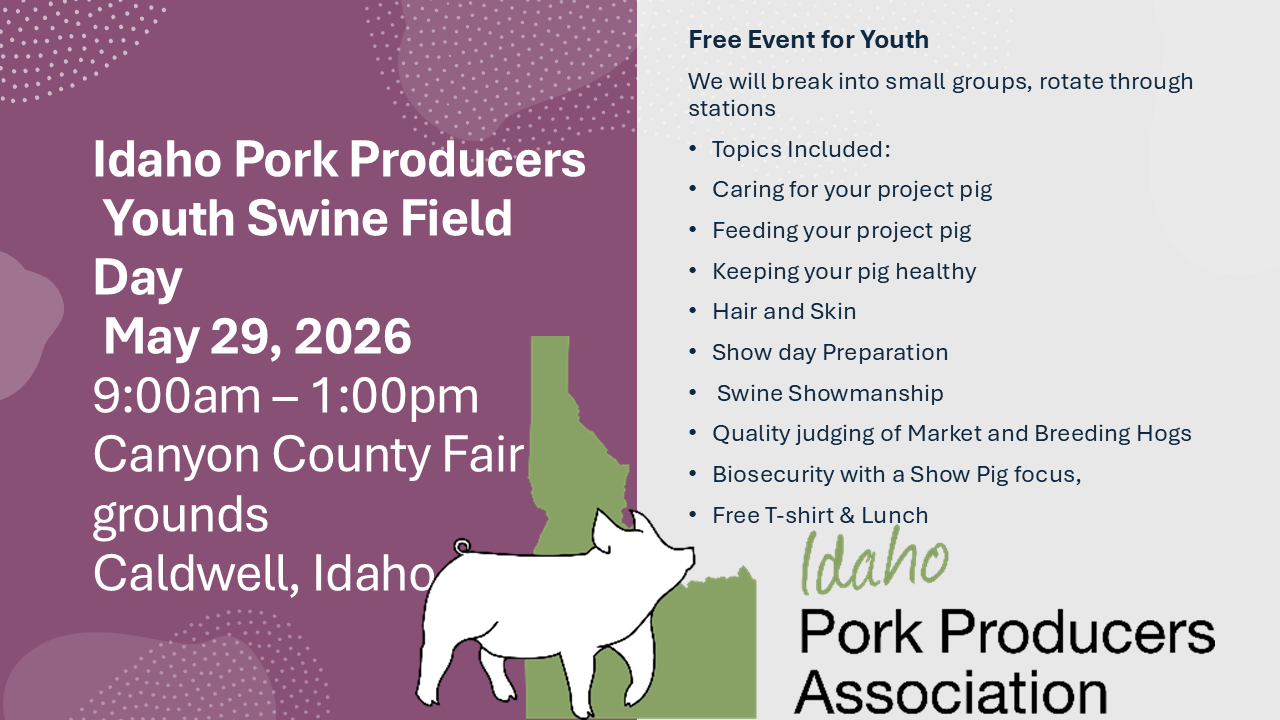 Winners will be announced May 29, 2026, at the Idaho Pork Producers Association Swine Field Days Event in